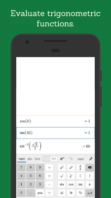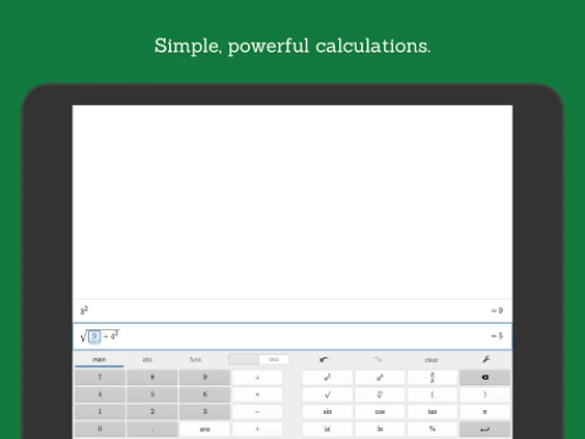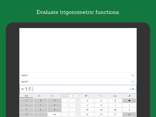 - View multiple expressions at once. Unlike many scientific calculators, all of your previous work remains visible on the screen.