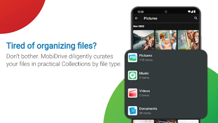• MobiDrive’s content transfer is straightforward and fast. Secure and sync files and folders to your drive in seconds.