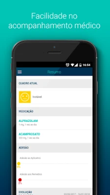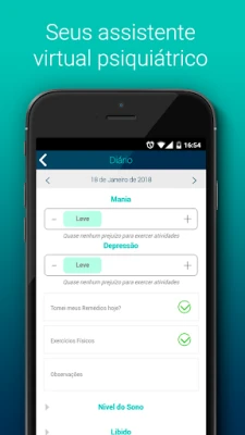 It has a diary where you inform all the feelings and activities that were carried out during the day and with that a moodchart identifies all the changes of humor throughout the treatment. With these data the doctor can better dosage the medications.