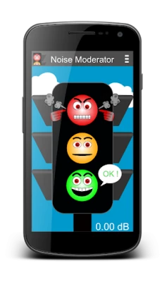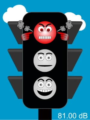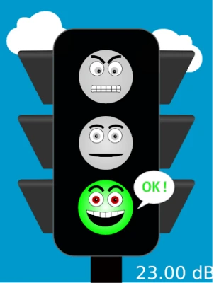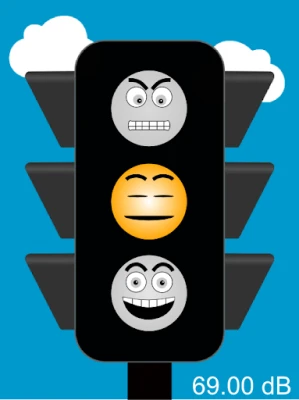 You can know the noise level in decibels that is also represented by funny traffic lights.