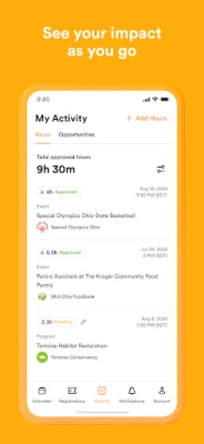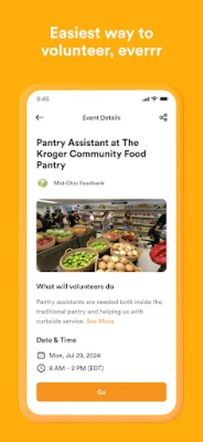 Your volunteer feed is personalized based on the causes you pick, and you can filter by the times you’re free. Find an event you’re excited about? Simply tap "go” and show up. POINT will tell you all the information you need to know on the app, before you arrive.