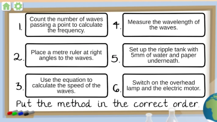 The main purpose of the Science Practical Simulator is to help revise for science exams. Go over what has been taught in class and test yourself with the method quiz after each practical.