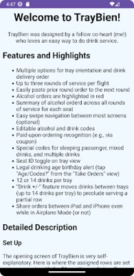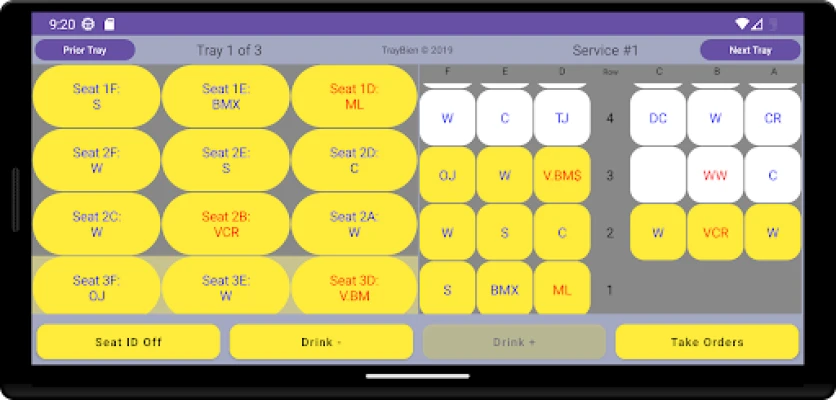TrayBien, developed for flight attendants of airlines using the Tray Method of drink service (e.g., SWA, Jet Blue), is designed to replace paper and pen in the drink ordering and delivery process.
