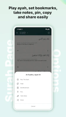 Read the Quran with word-by-word meanings, tafsir, and translations. Listen to recitations in sync with excellent audio quality. For convenient review, make notes, bookmark, or pin particular Ayahs.