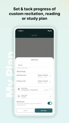 Create personalized study plans by selecting Ayah ranges. Monitor your progress in understanding and remain dedicated to your learning objectives.